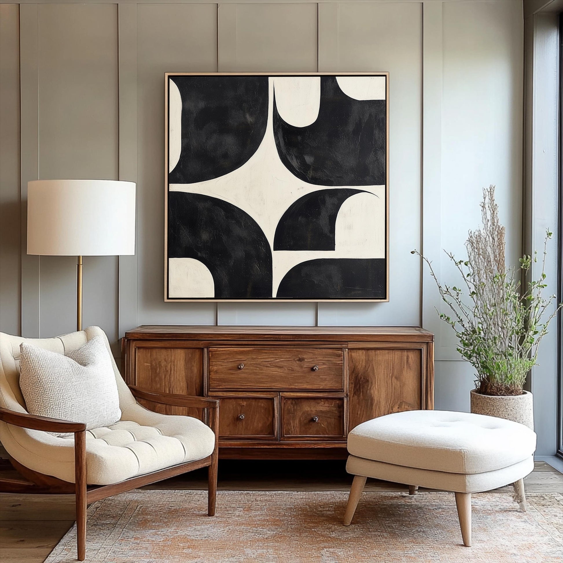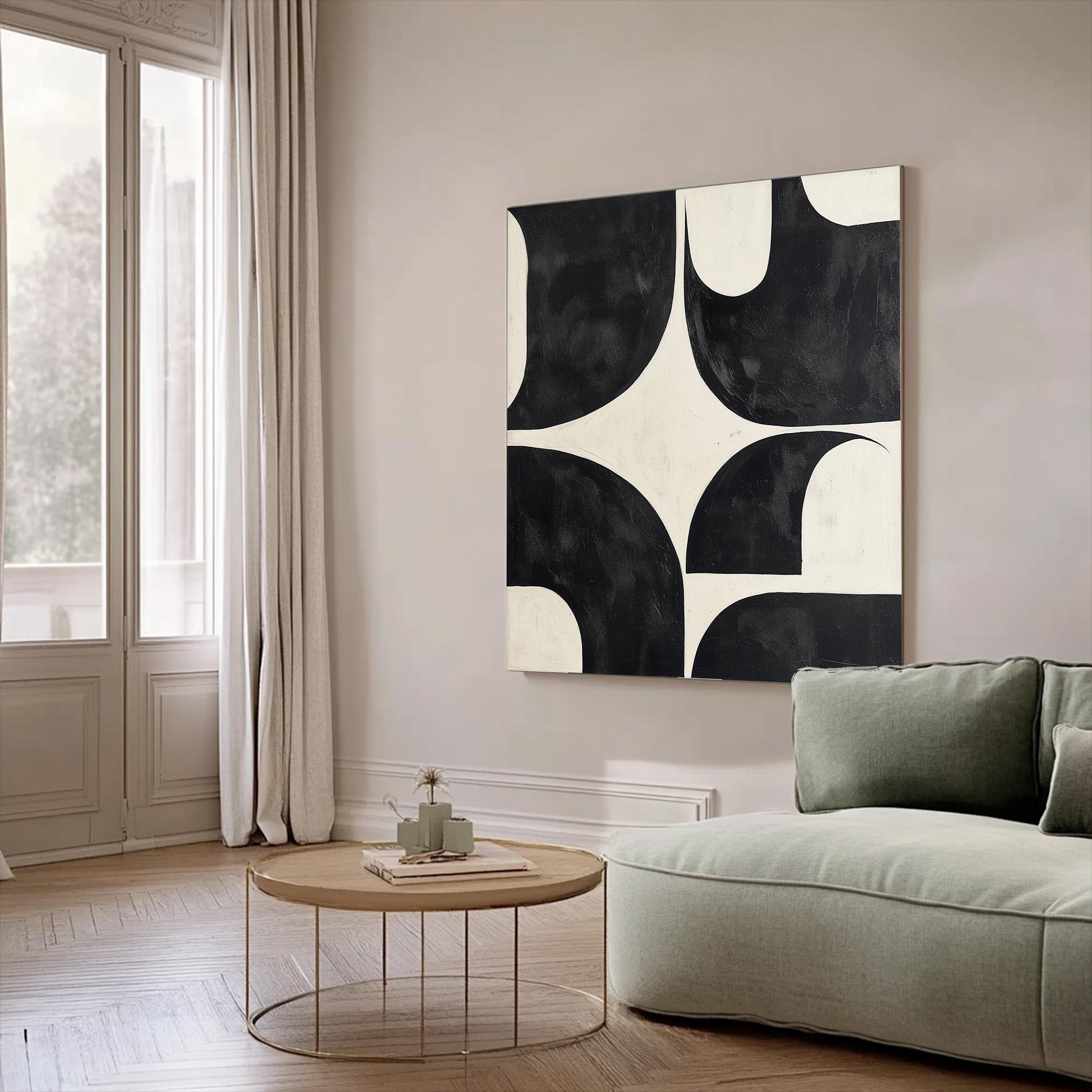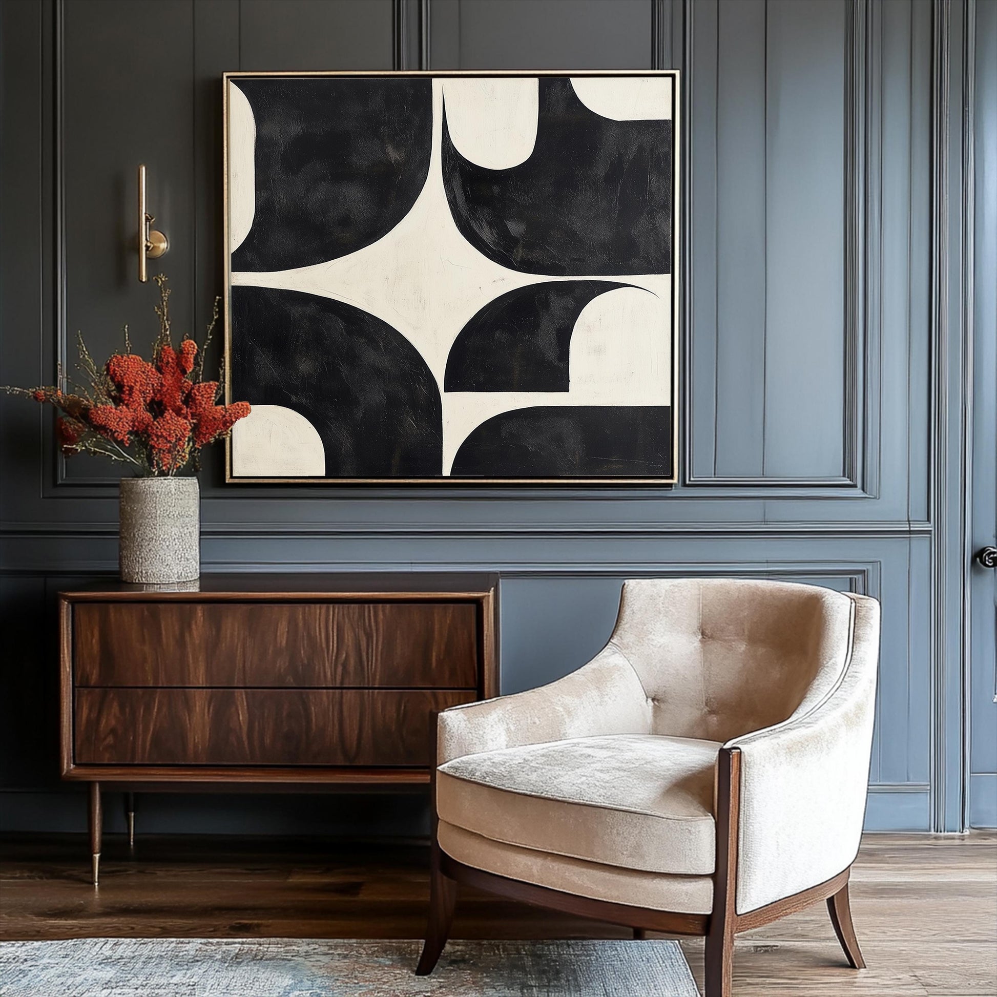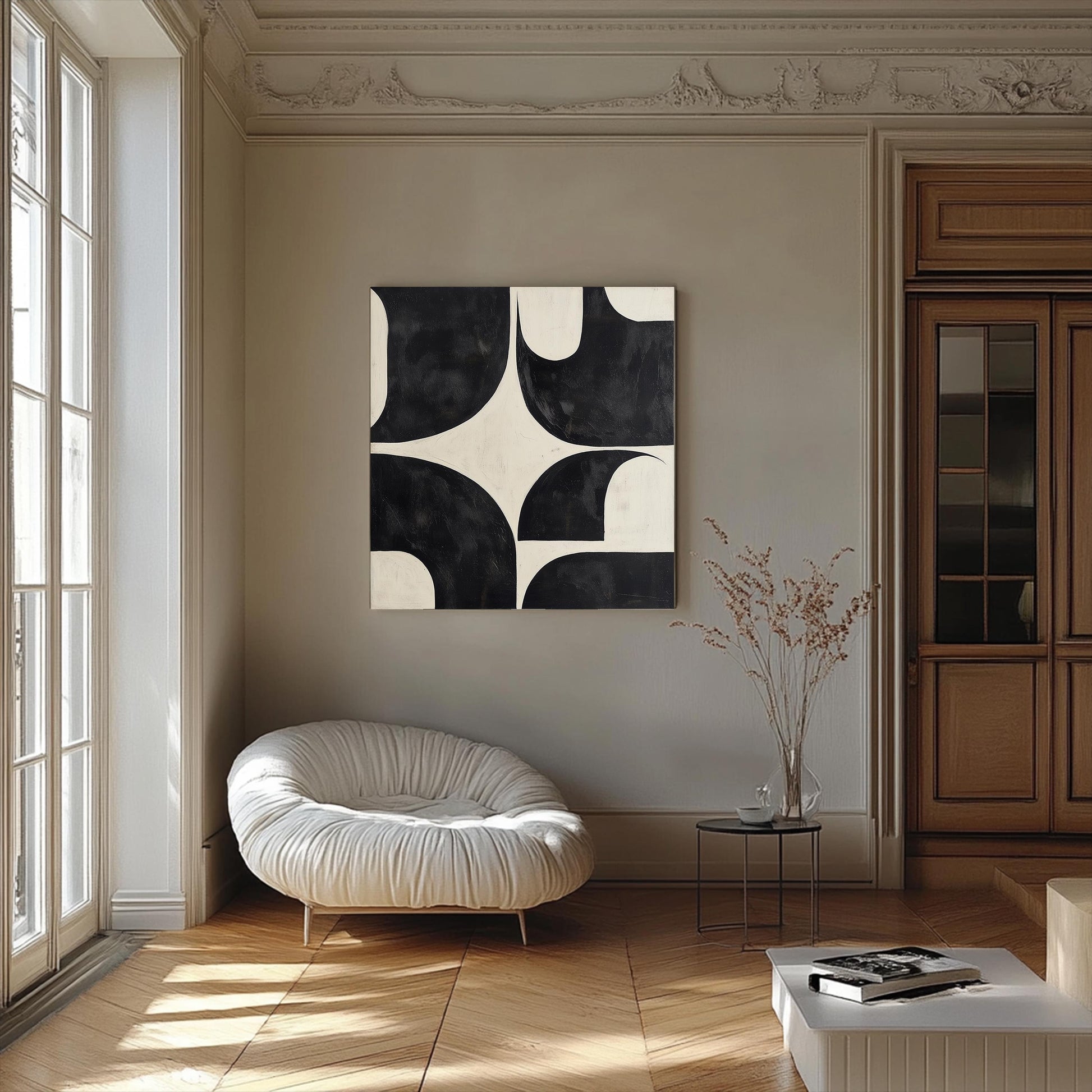 Defiantly monochromatic, this black and white canvas challenges the notion that bold art requires color. This isn't your predictable office artwork—it's a visual rebellion against decorative conventions, commanding attention through audacious restraint. The stark contrast creates tension that transforms spaces from mundane to provocatively contemporary. Perfect for homes and offices that reject safe design choices in favor of art that makes an unapologetic statement. Hang this where it can disrupt expectations and spark conversations about the radical power of minimalist confidence.