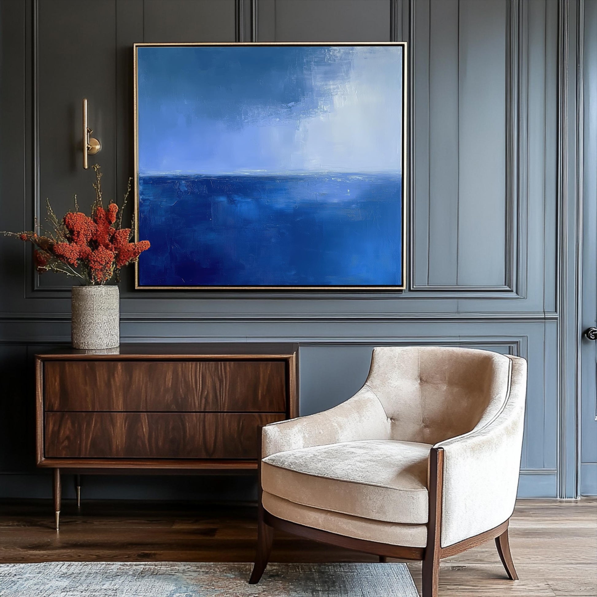 Defiantly bold, this square blue canvas challenges conventional decorative boundaries with its unapologetic maximalist approach. This isn't your predictable blue art—it's a visual rebellion that transforms color into provocative statement. The fearless scale creates tension between containment and expansion, demanding attention without begging for it. Perfect for spaces that reject safe design choices in favor of large-format art that makes walls speak with revolutionary confidence. For those brave enough to understand true contemporary courage means embracing the radical power of deliberate excess and transforming a single color into a powerful declaration of modern sophistication. This isn't just room decor—it's a blue manifesto.