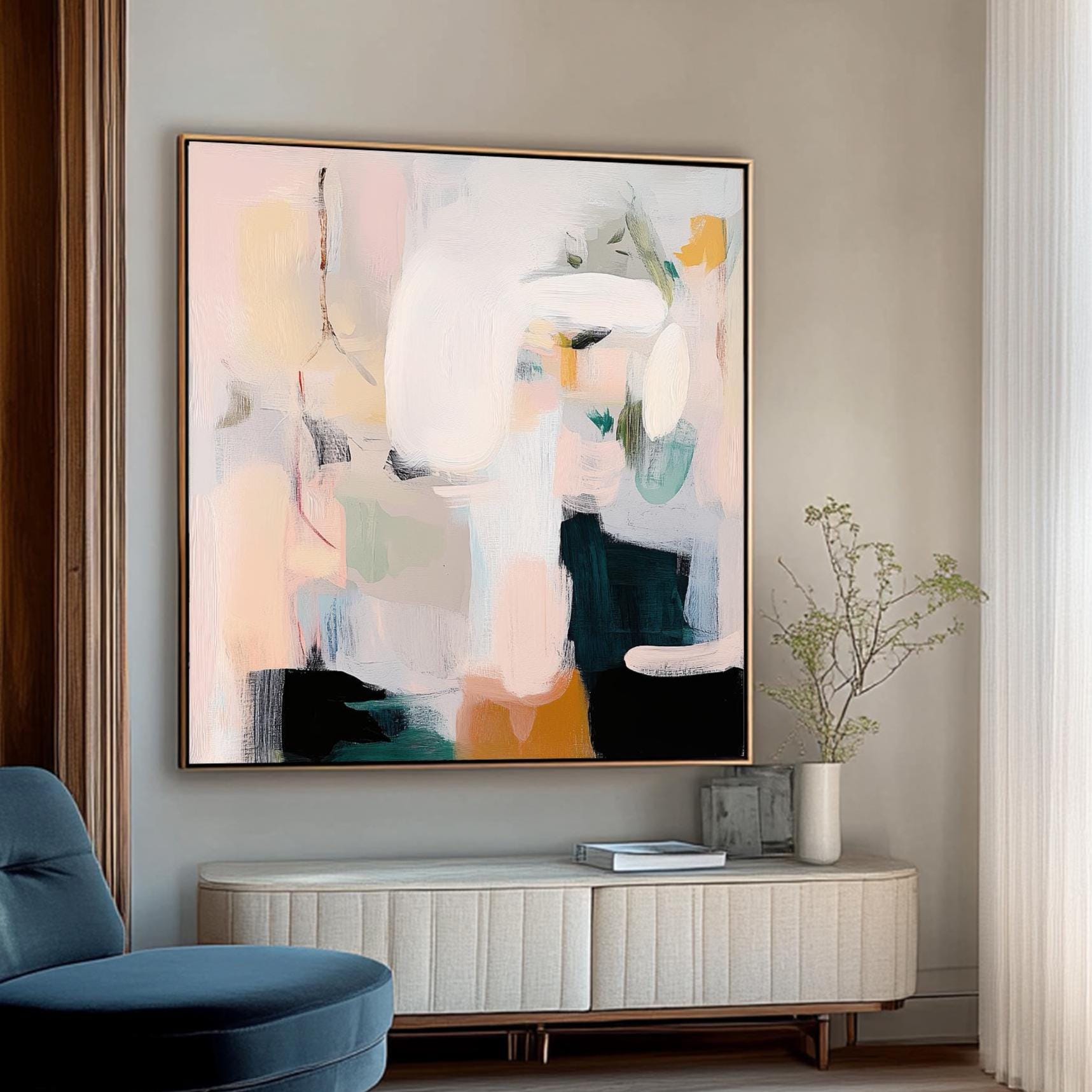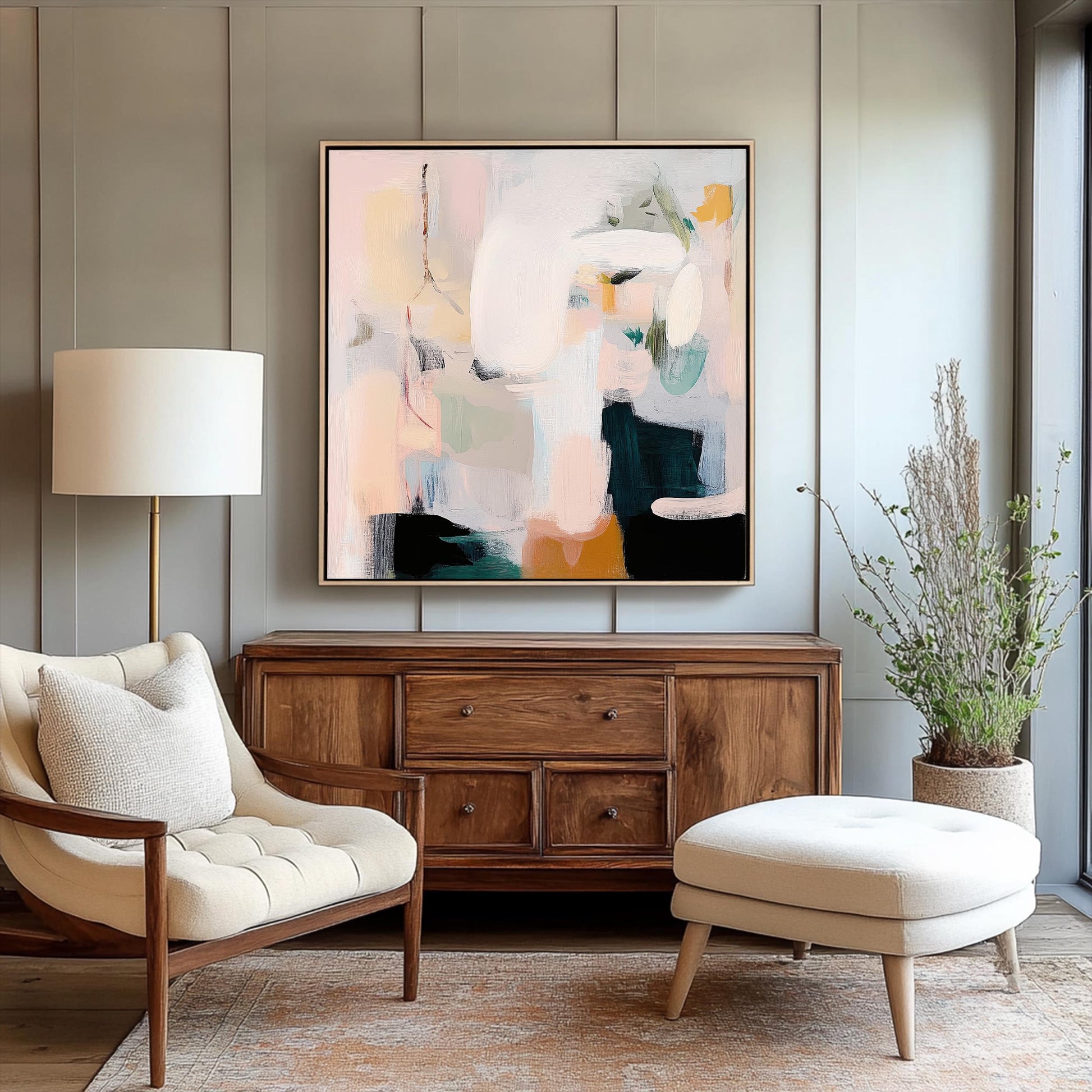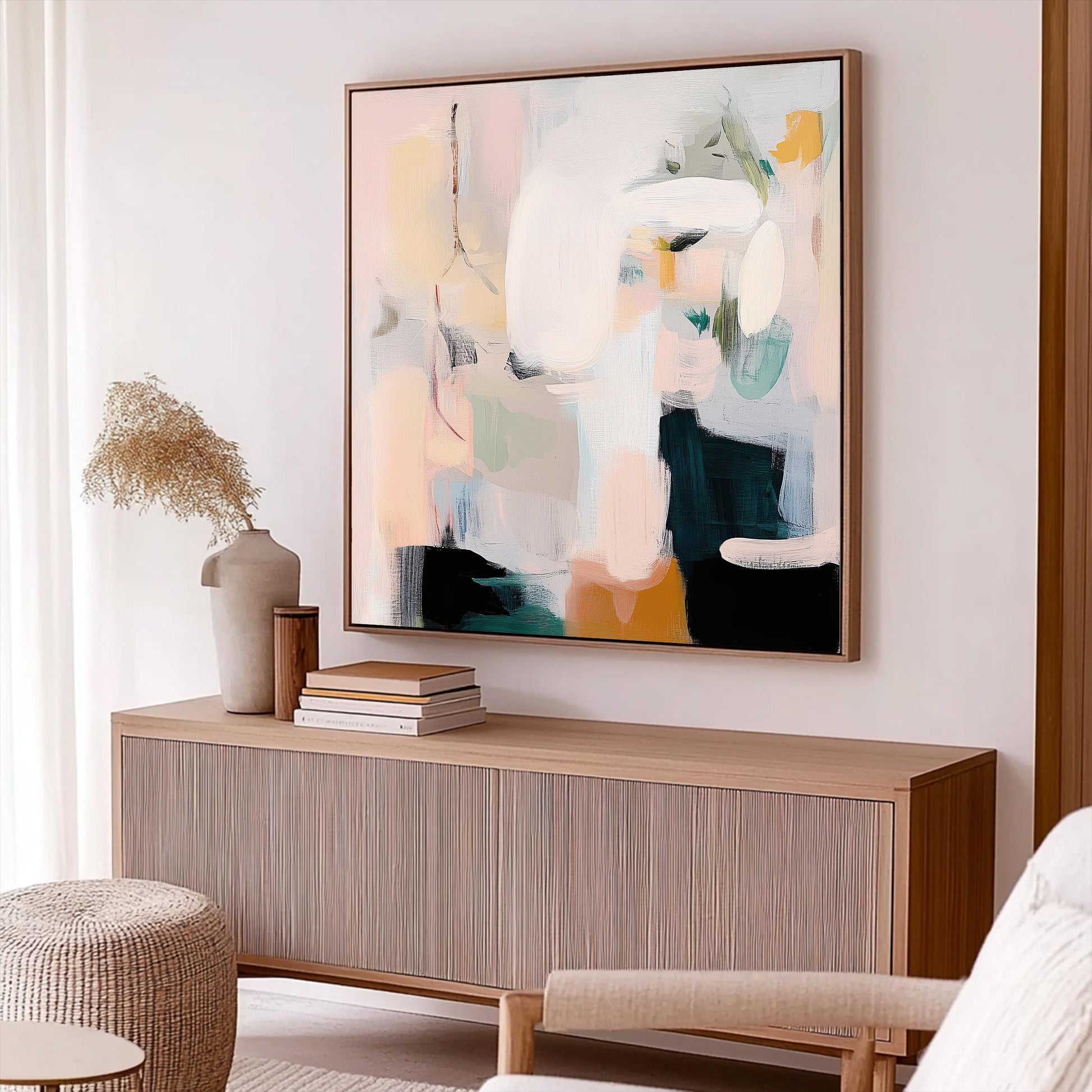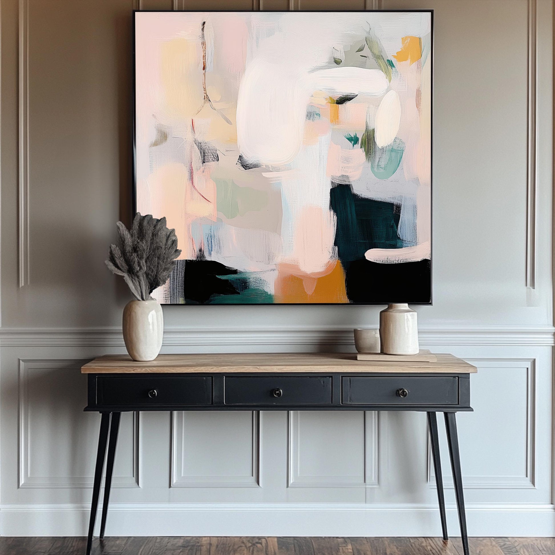 Brazenly understated, this blush and sage canvas defies decorative expectations with its deceptive softness. This isn't your safe, predictable neutral art—it's a visual rebellion disguised in pastel clothing. The fearless interplay between gentle hues creates tension that challenges conventional notions of "neutral" wall decor. Perfect for living spaces that reject safe design choices in favor of art that makes an unapologetic statement through deliberate subtlety. For walls that understand true contemporary courage means having the audacity to embrace softness as strength and transform seemingly simple color combinations into powerful declarations of modern confidence.