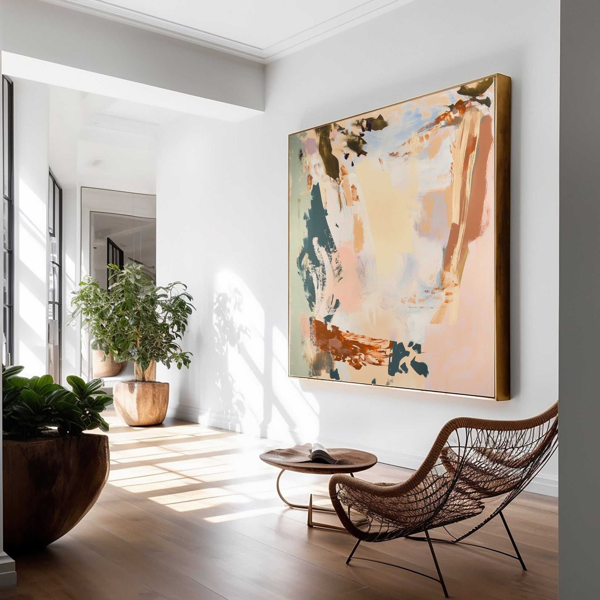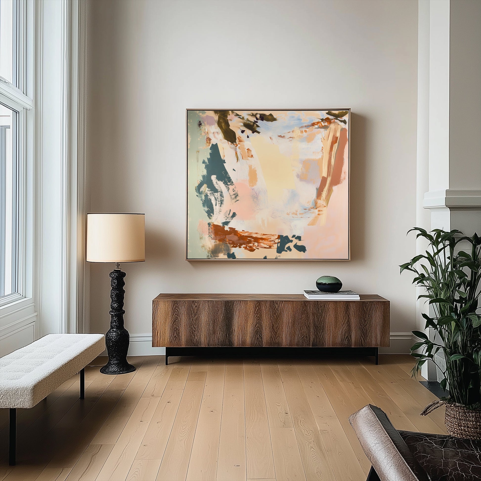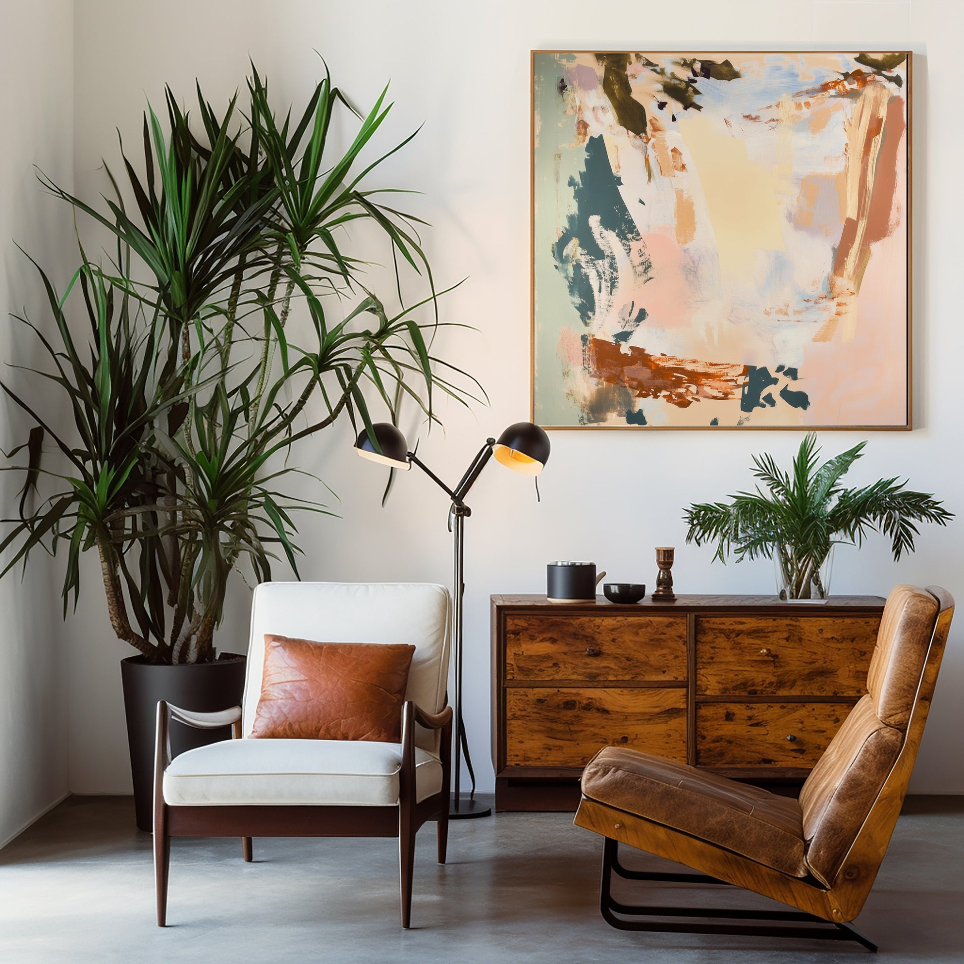 Defiantly understated, this brown and beige abstract challenges the notion that bold art requires bold colors. This isn't your safe, forgettable neutral piece—it's a provocative statement that transforms restraint into rebellion. The audacious interplay of earth tones creates visual tension that commands attention through deliberate absence rather than obvious presence. Perfect for the living room that refuses conventional decorative boundaries and embraces the radical power of minimalist confidence. For walls that don't need to shout to make an unforgettable statement.