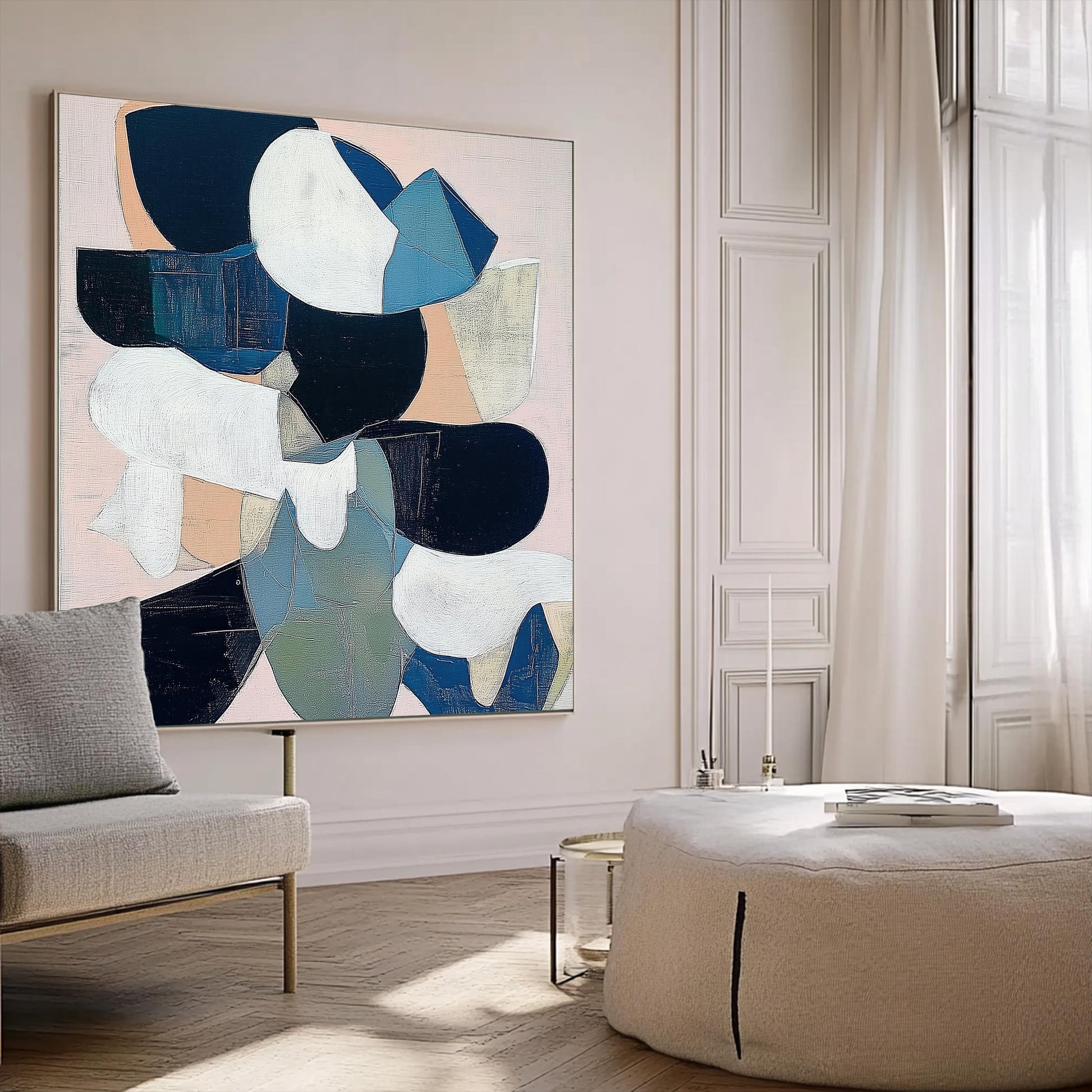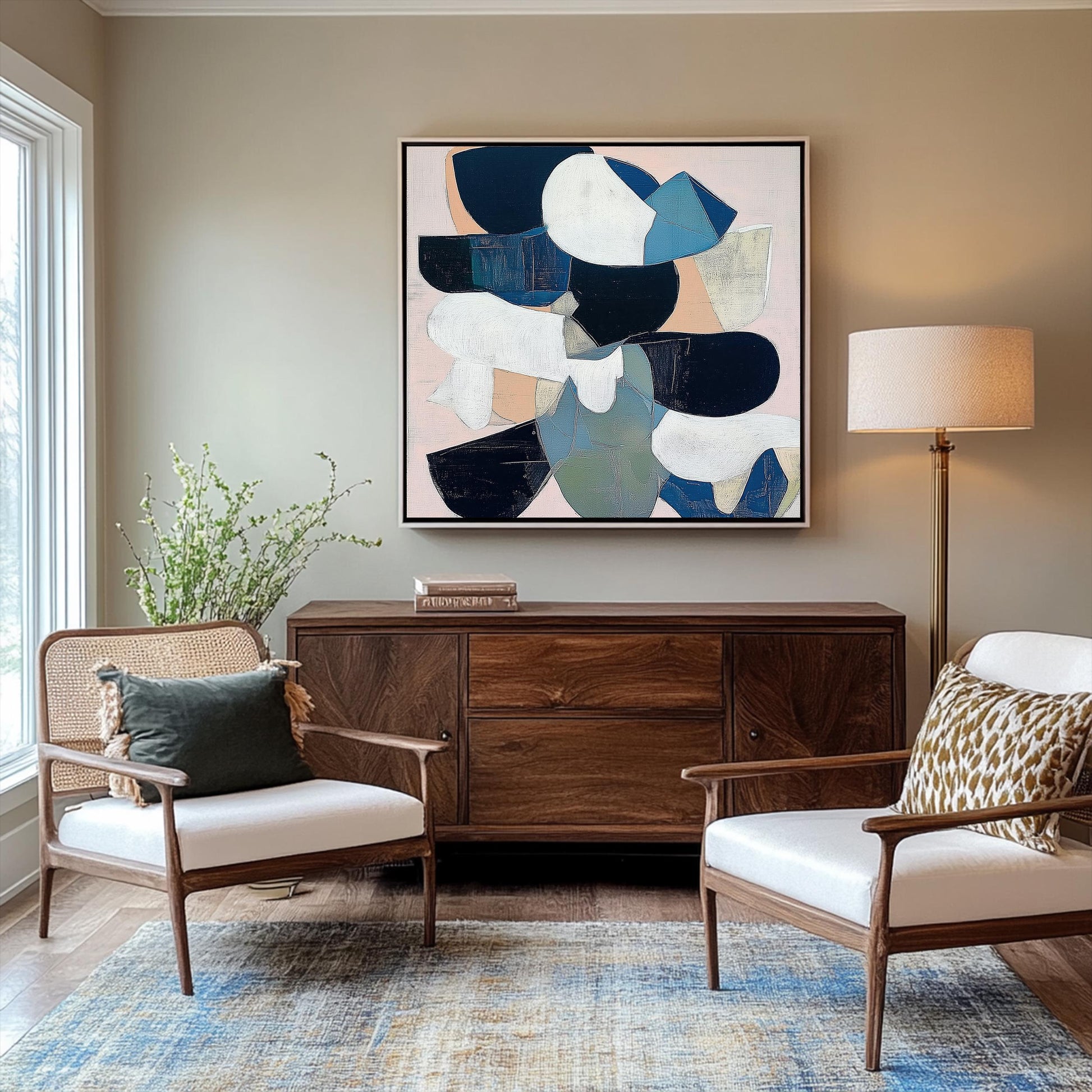 Defiantly structured, this navy and beige canvas challenges conventional decorative boundaries with its unapologetic geometric precision. This isn't your predictable office art—it's a visual rebellion that transforms seemingly simple shapes into provocative statements. The fearless contrast between dark blue depths and neutral beige creates tension that demands attention without begging for it. Perfect for living spaces and workplaces that reject safe design choices in favor of framed art that makes walls speak with revolutionary confidence. For those brave enough to understand true contemporary style means embracing the radical power of deliberate form and transforming basic geometric elements into bold declarations of modern sophistication.