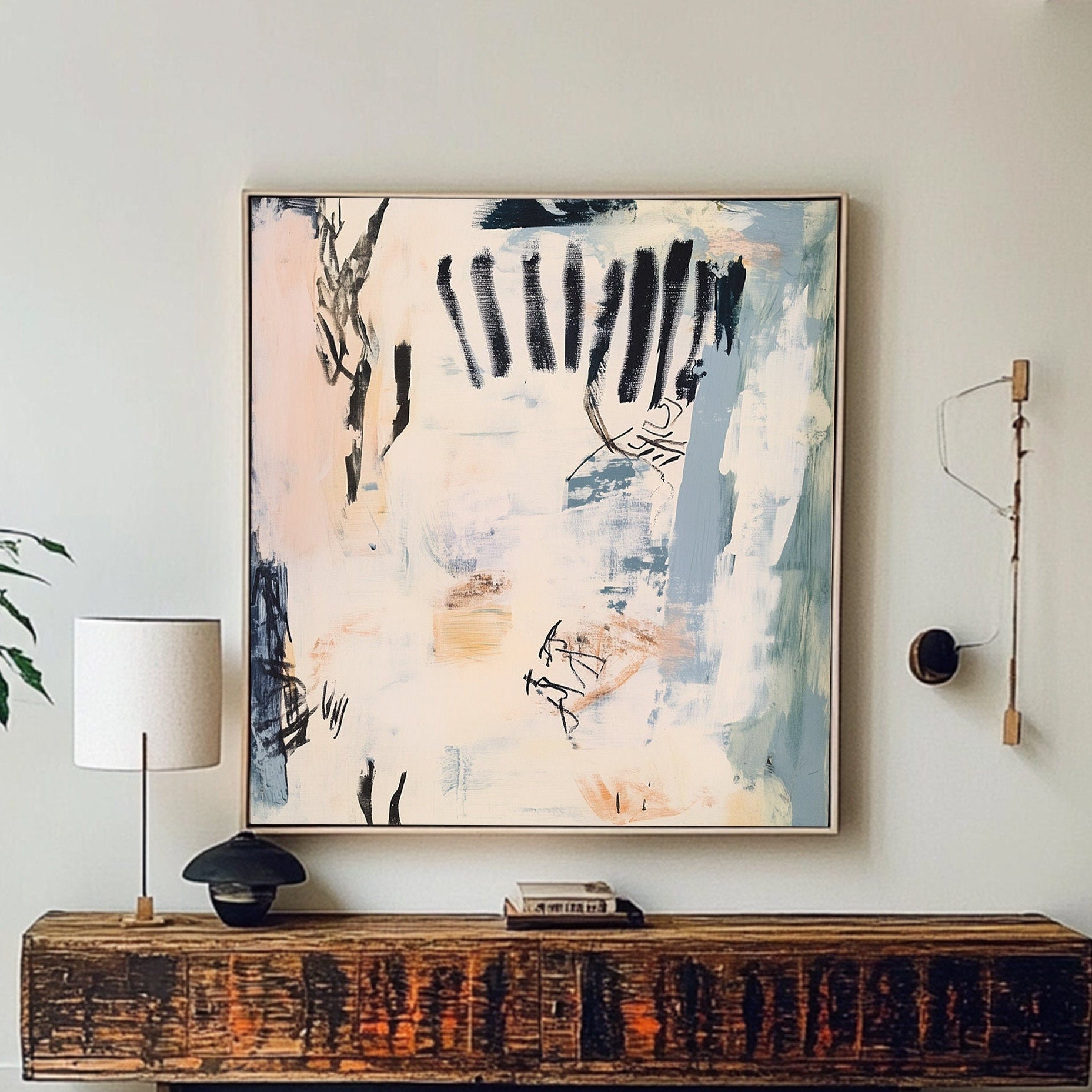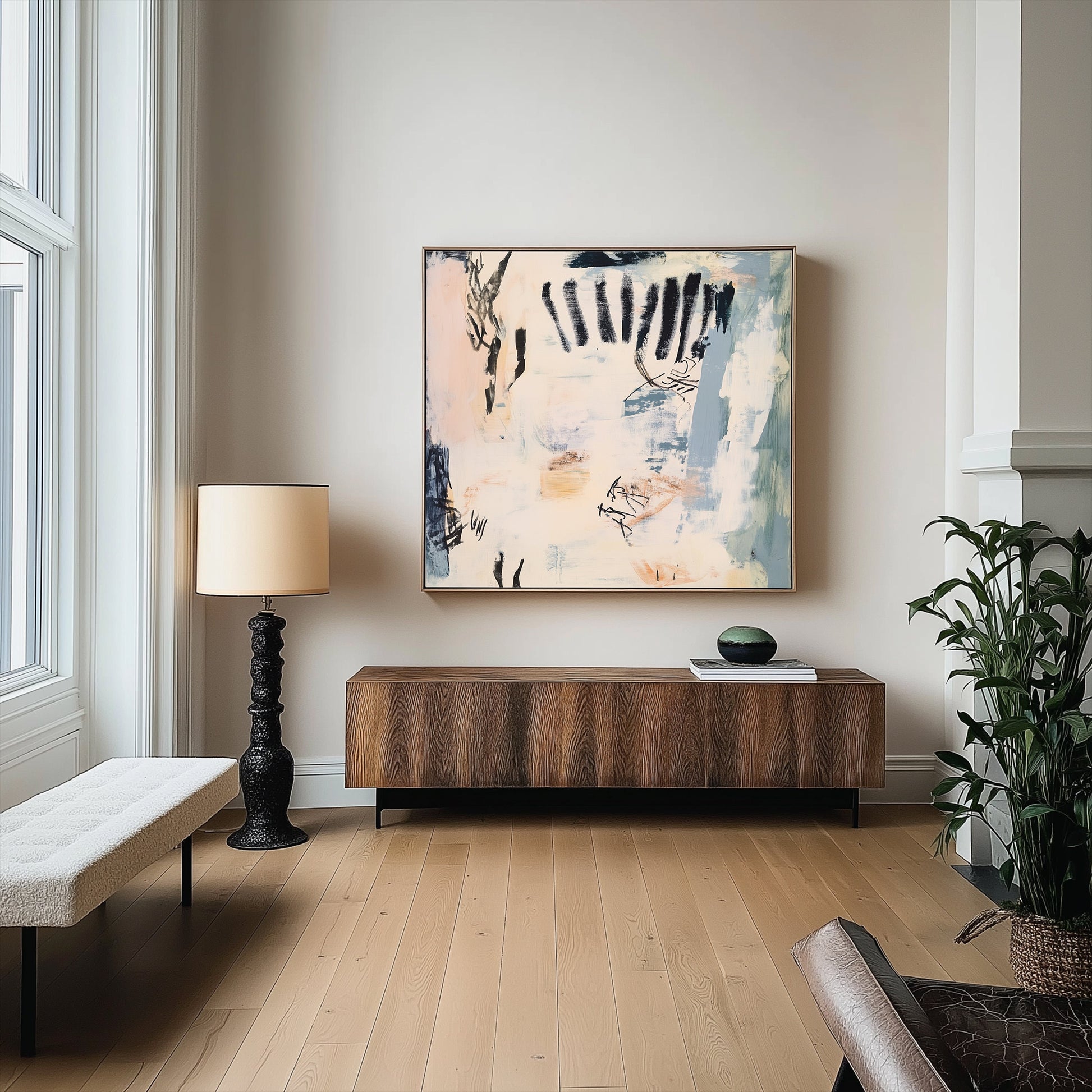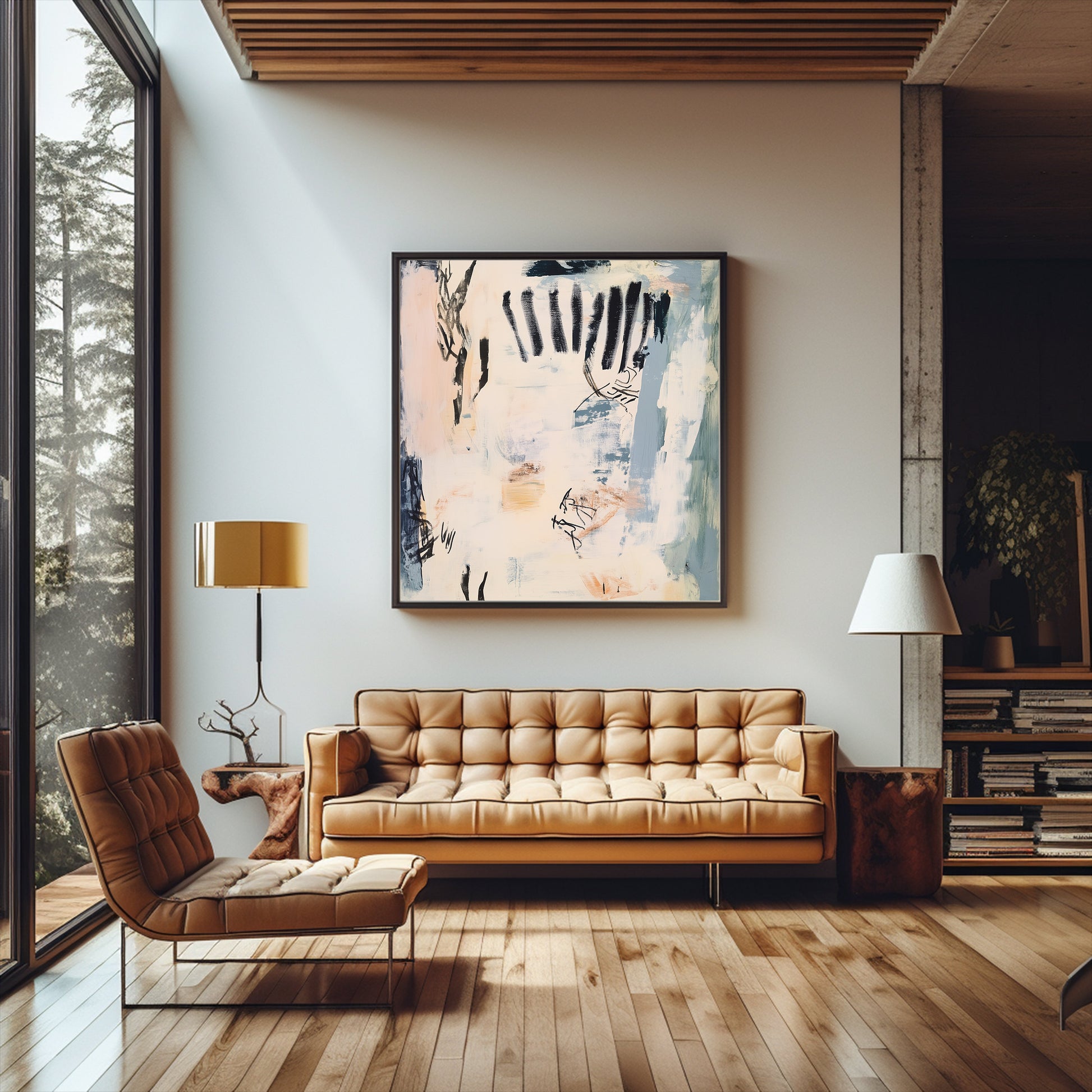 Boldly transform your living space with this striking large-format abstract print. The audacious interplay of beige and blue creates a visual rebellion against the ordinary, commanding attention while maintaining sophisticated appeal. This original artwork doesn't just decorate a wall—it makes an unapologetic statement about your fearless approach to design. Perfect for the living room that refuses to whisper when it can roar.