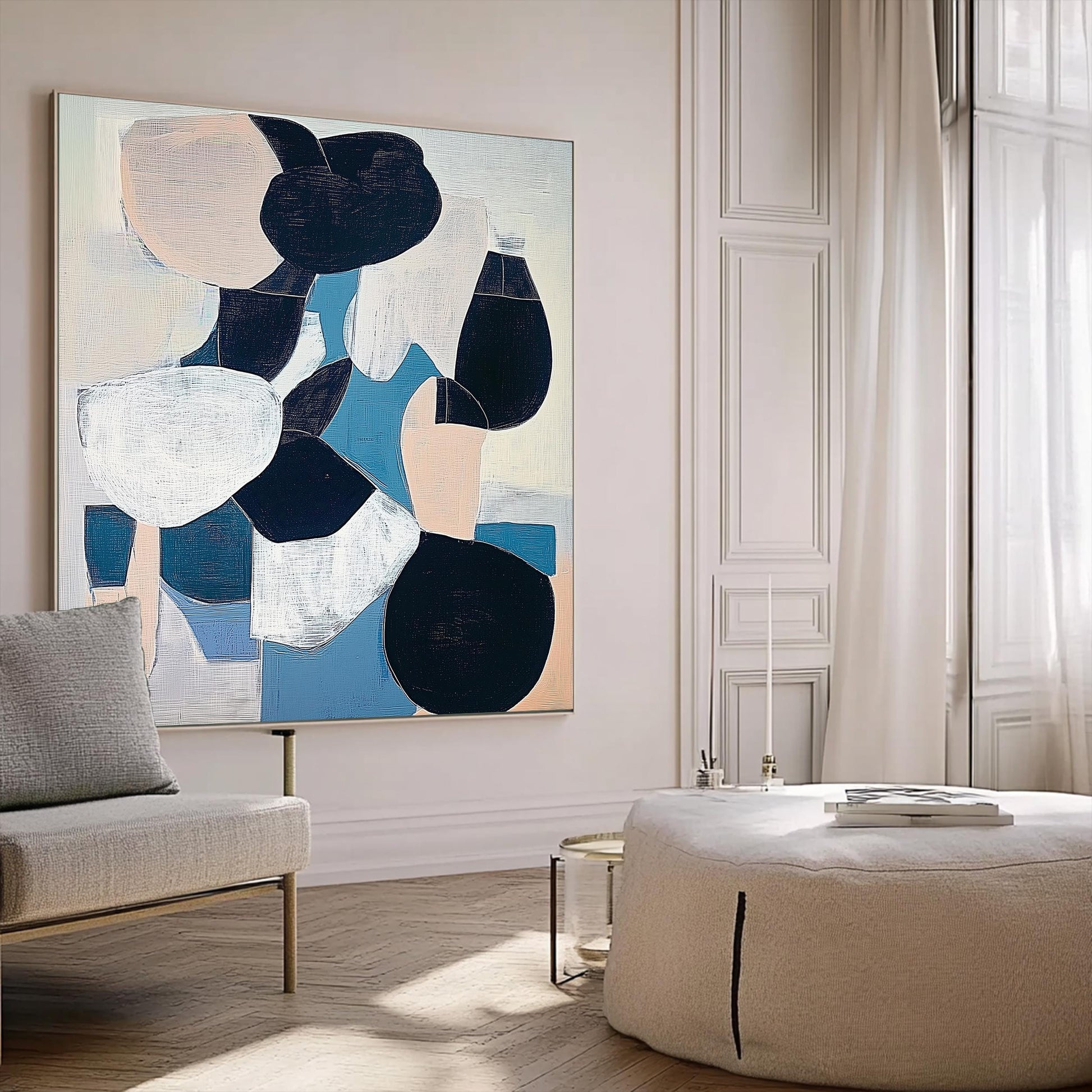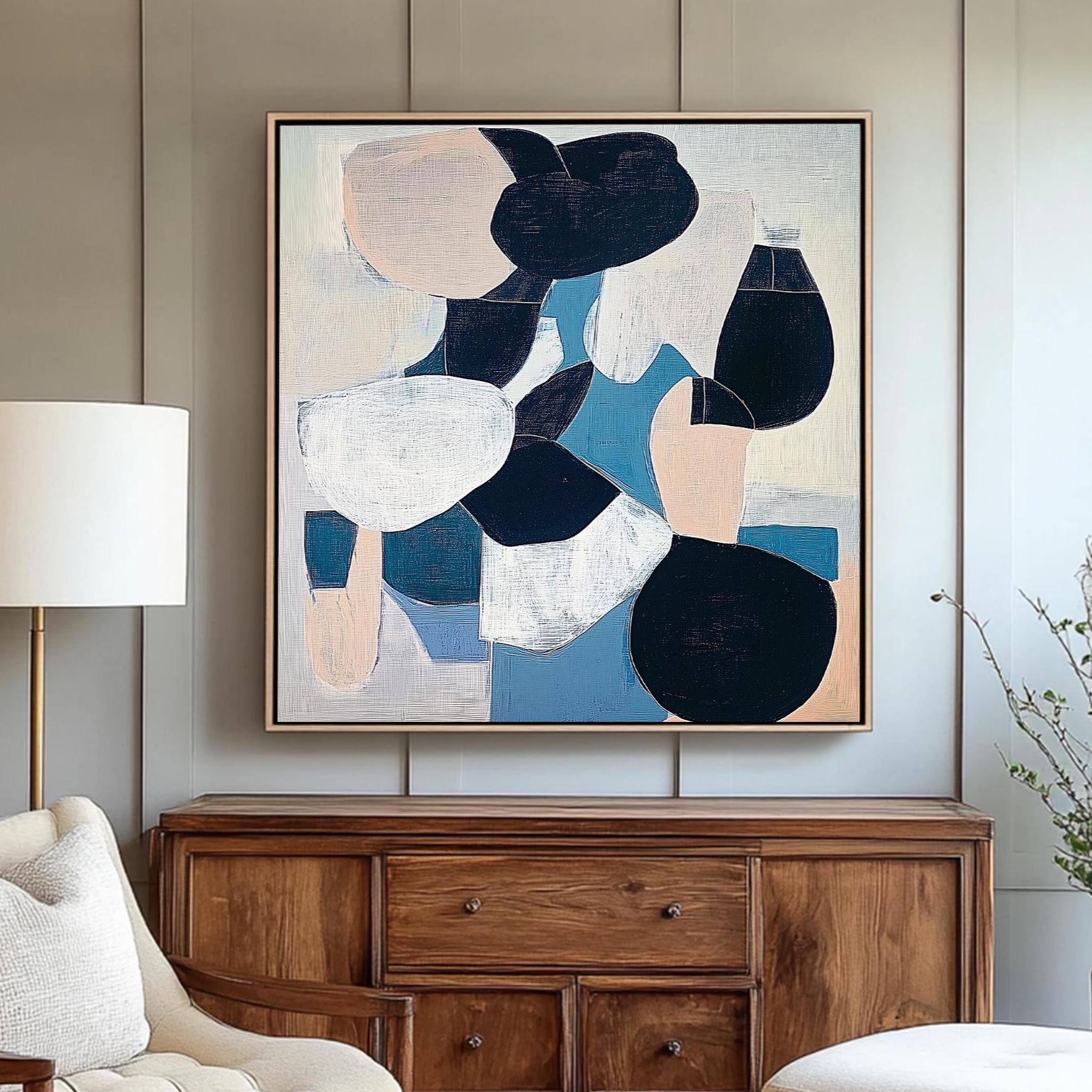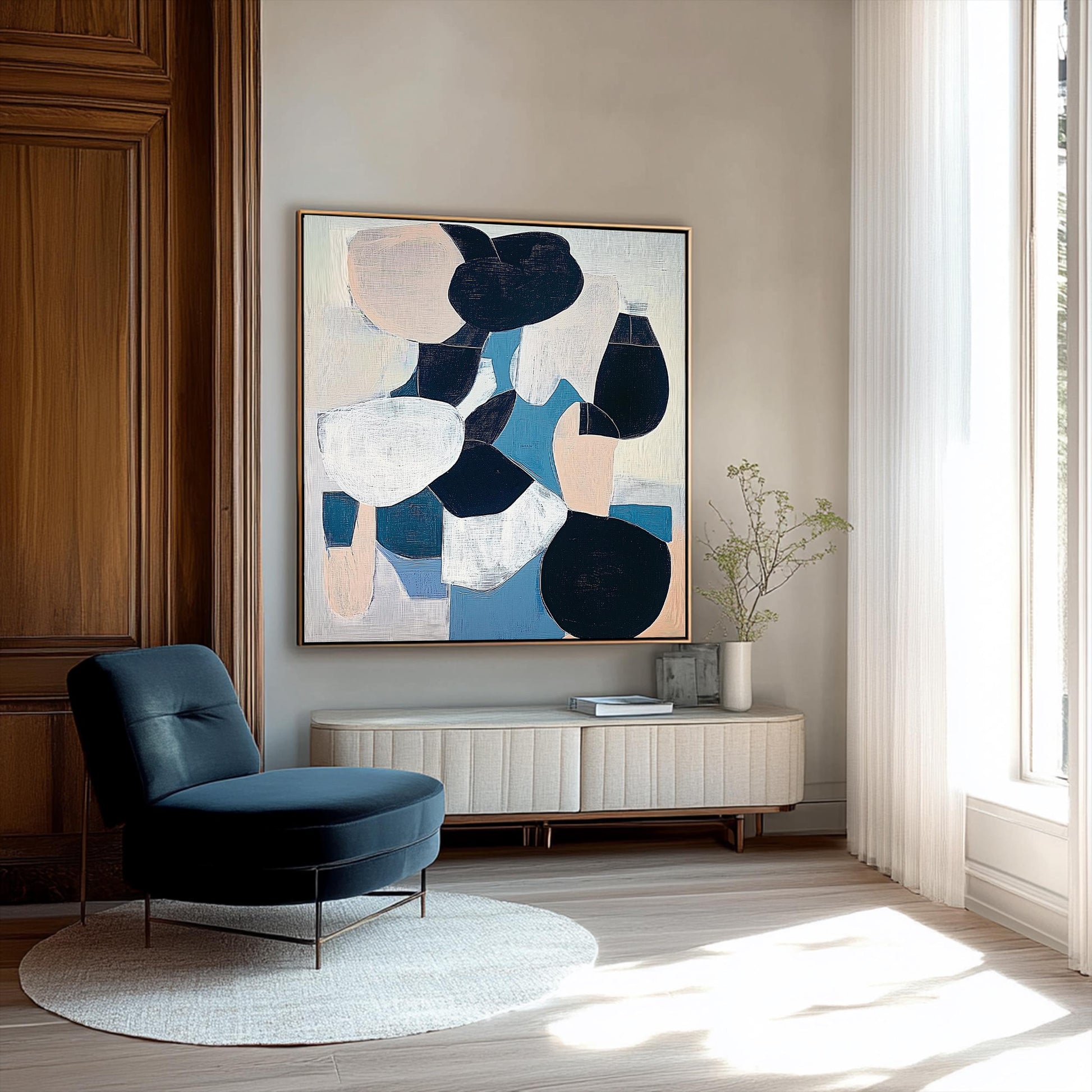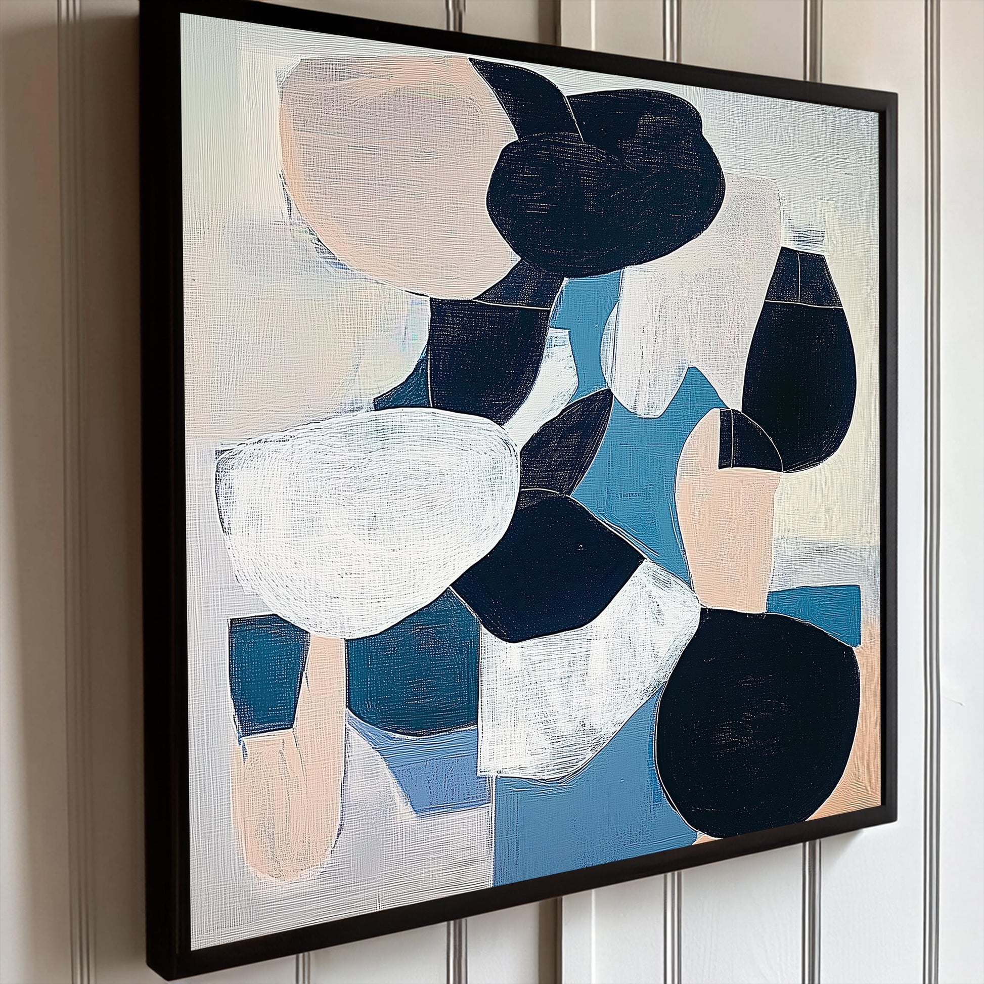 Brazenly restrained, this navy and beige abstract defies decorative expectations with its audacious minimalism. This isn't your safe, predictable office art—it's a visual rebellion that transforms geometric precision into revolutionary statement. The fearless contrast between dark blue and neutral beige creates tension that commands attention without desperate theatrics. Perfect for living spaces and workplaces that reject conventional boundaries and embrace the radical power of deliberate simplicity. For walls that understand true contemporary courage means having the boldness to make powerful statements through calculated restraint rather than chaotic expression. This framed canvas doesn't decorate—it transforms.