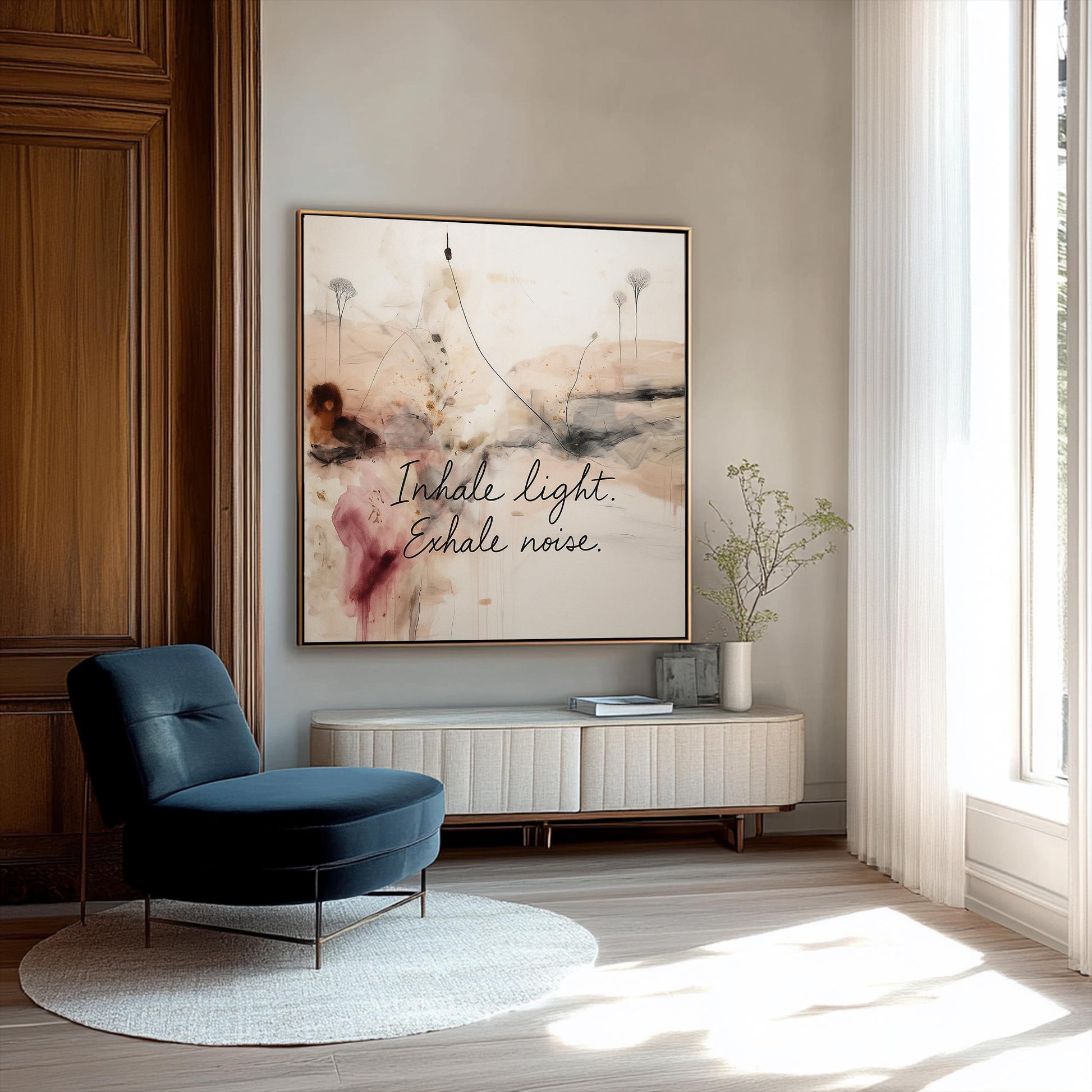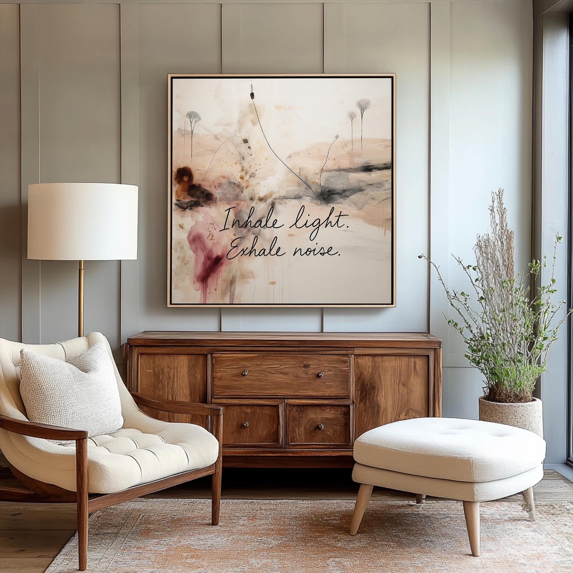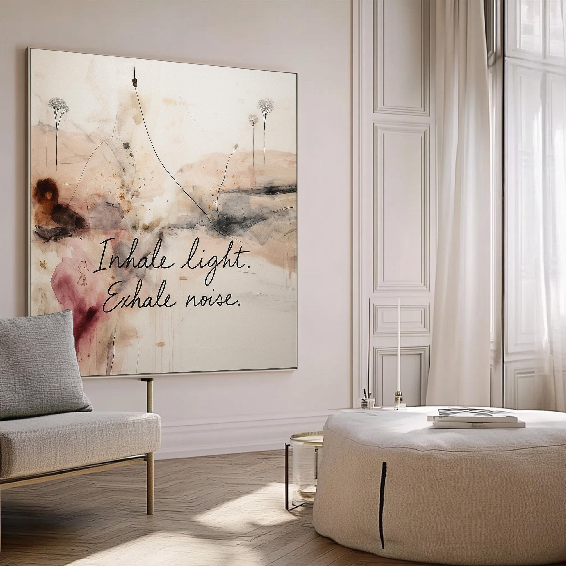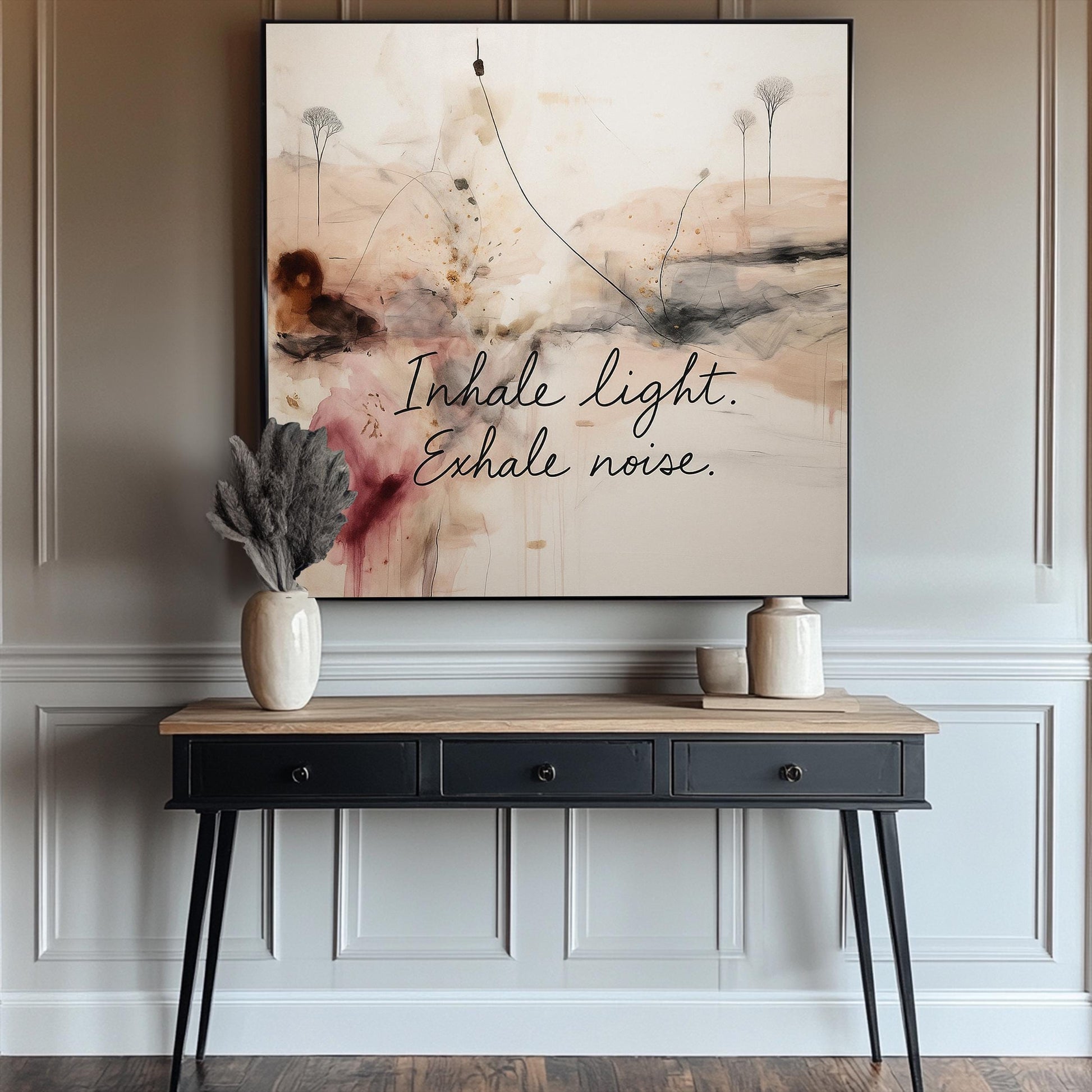 Defiantly introspective, this canvas challenges conventional motivational art with its unapologetic depth. This isn't your predictable yoga studio platitude—it's a visual provocation disguised as calm neutrality. The fearless fusion of abstract imagery and powerful text creates tension between meditation and confrontation, demanding viewers engage rather than merely observe. Perfect for mindfulness spaces that reject decorative clichés in favor of art that makes walls speak with revolutionary authenticity. For those brave enough to understand true spiritual courage means embracing words that challenge rather than merely comfort, all wrapped in beige tones that refuse to be dismissed as merely safe.