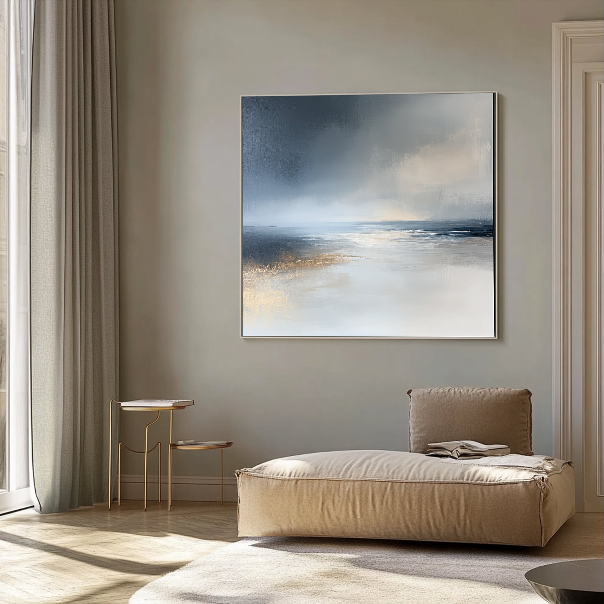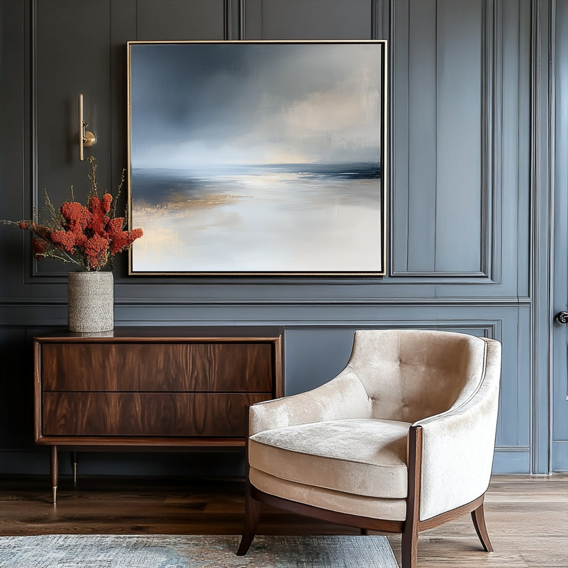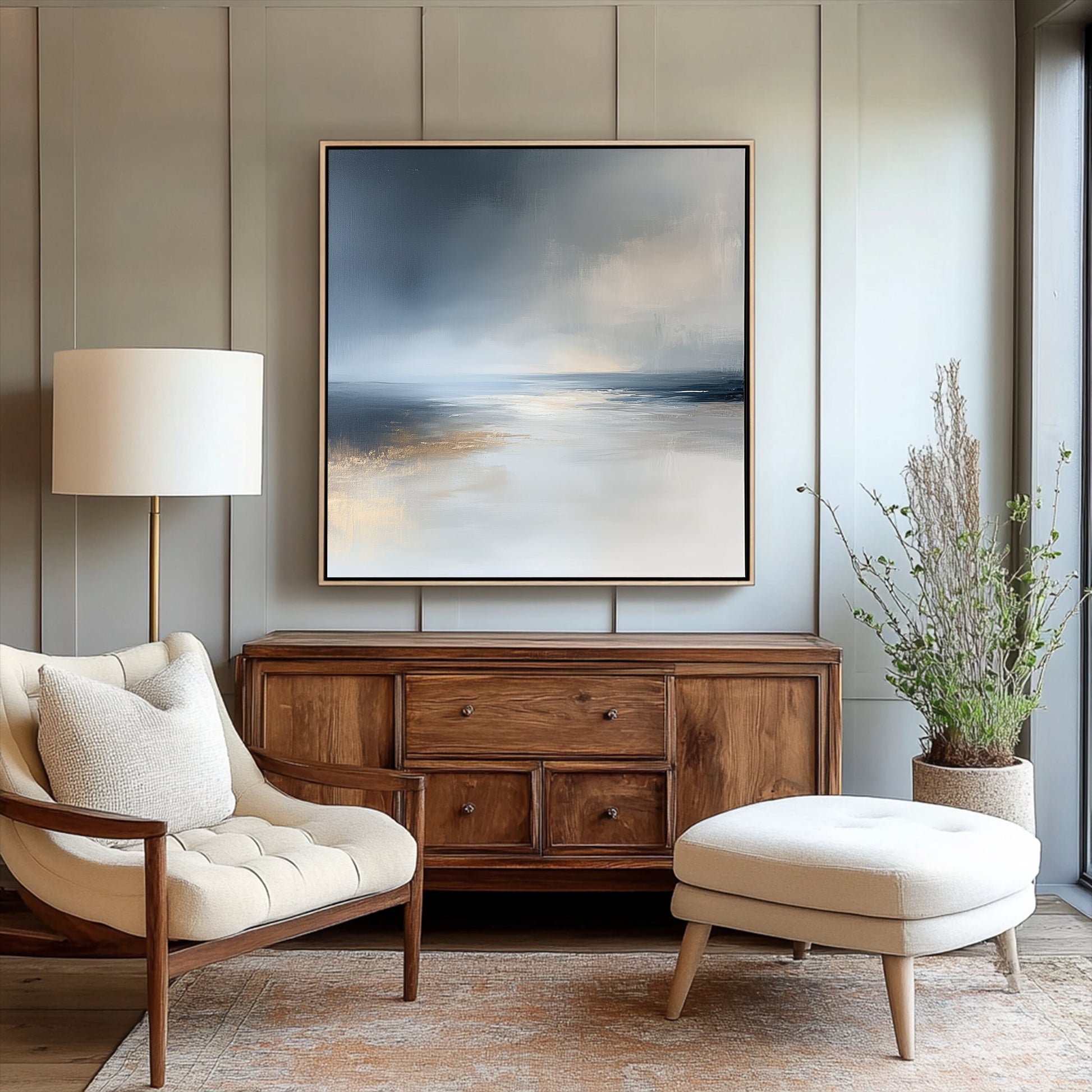 Brazenly reimagined, this blue-gray skyline defies conventional nature art with its unapologetic abstraction. This isn't your predictable farmhouse decor—it's a visual rebellion that transforms familiar horizons into provocative statements. The fearless minimalism creates tension between recognition and reinvention, challenging viewers to confront their expectations of what "modern farmhouse" should look like. Perfect for living spaces that reject safe decorative choices in favor of square-format art that makes walls speak with revolutionary confidence. For those brave enough to understand true contemporary courage means having the boldness to deconstruct natural landscapes rather than merely reproduce them, transforming skylines into powerful declarations of artistic defiance.