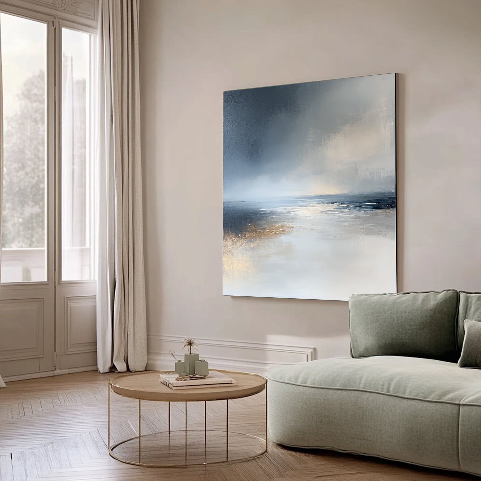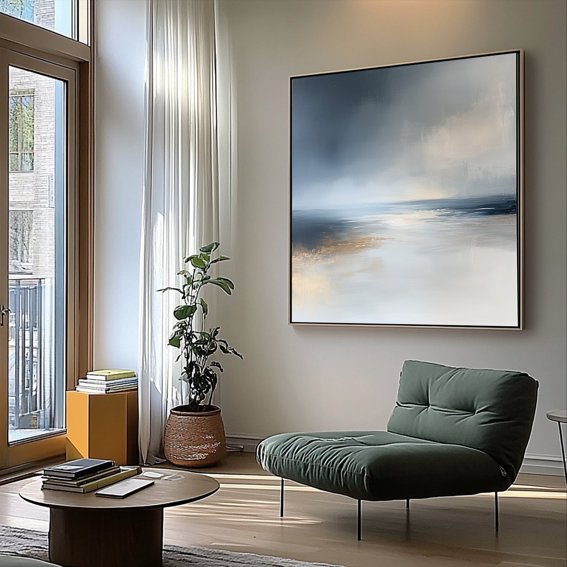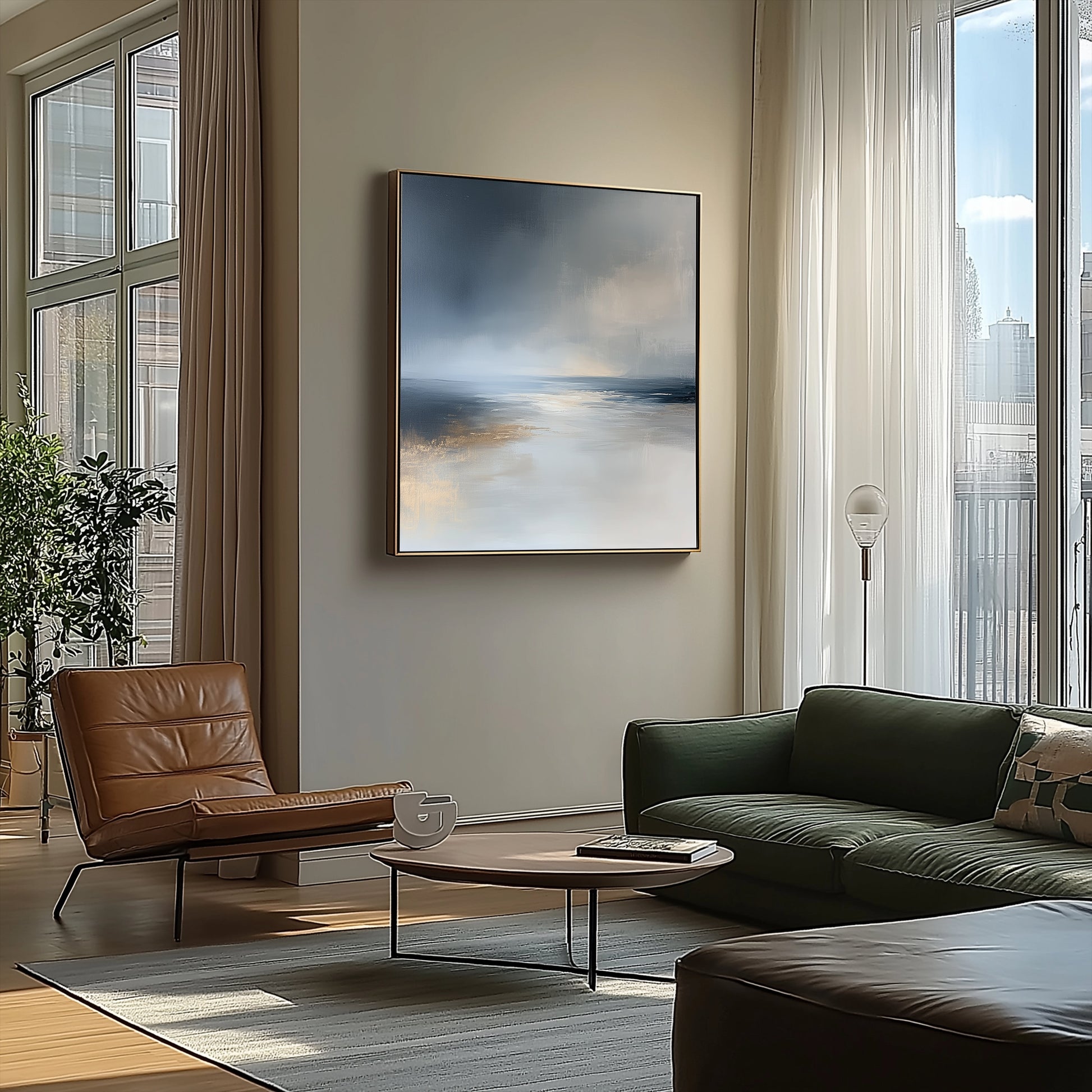 Brazenly reimagined, this blue-gray skyline defies conventional nature art with its unapologetic abstraction. This isn't your predictable farmhouse decor—it's a visual rebellion that transforms familiar horizons into provocative statements. The fearless minimalism creates tension between recognition and reinvention, challenging viewers to confront their expectations of what "modern farmhouse" should look like. Perfect for living spaces that reject safe decorative choices in favor of square-format art that makes walls speak with revolutionary confidence. For those brave enough to understand true contemporary courage means having the boldness to deconstruct natural landscapes rather than merely reproduce them, transforming skylines into powerful declarations of artistic defiance.