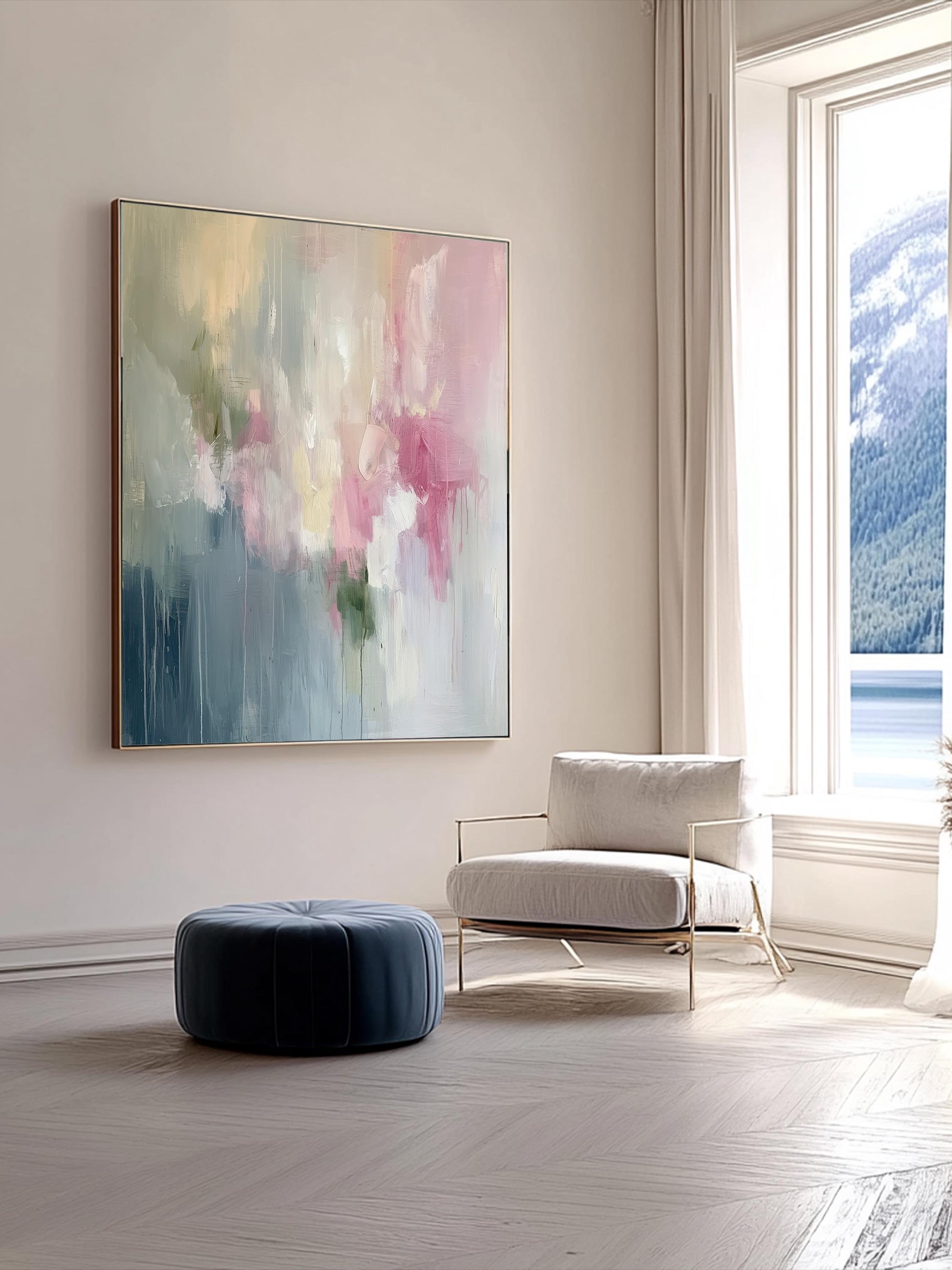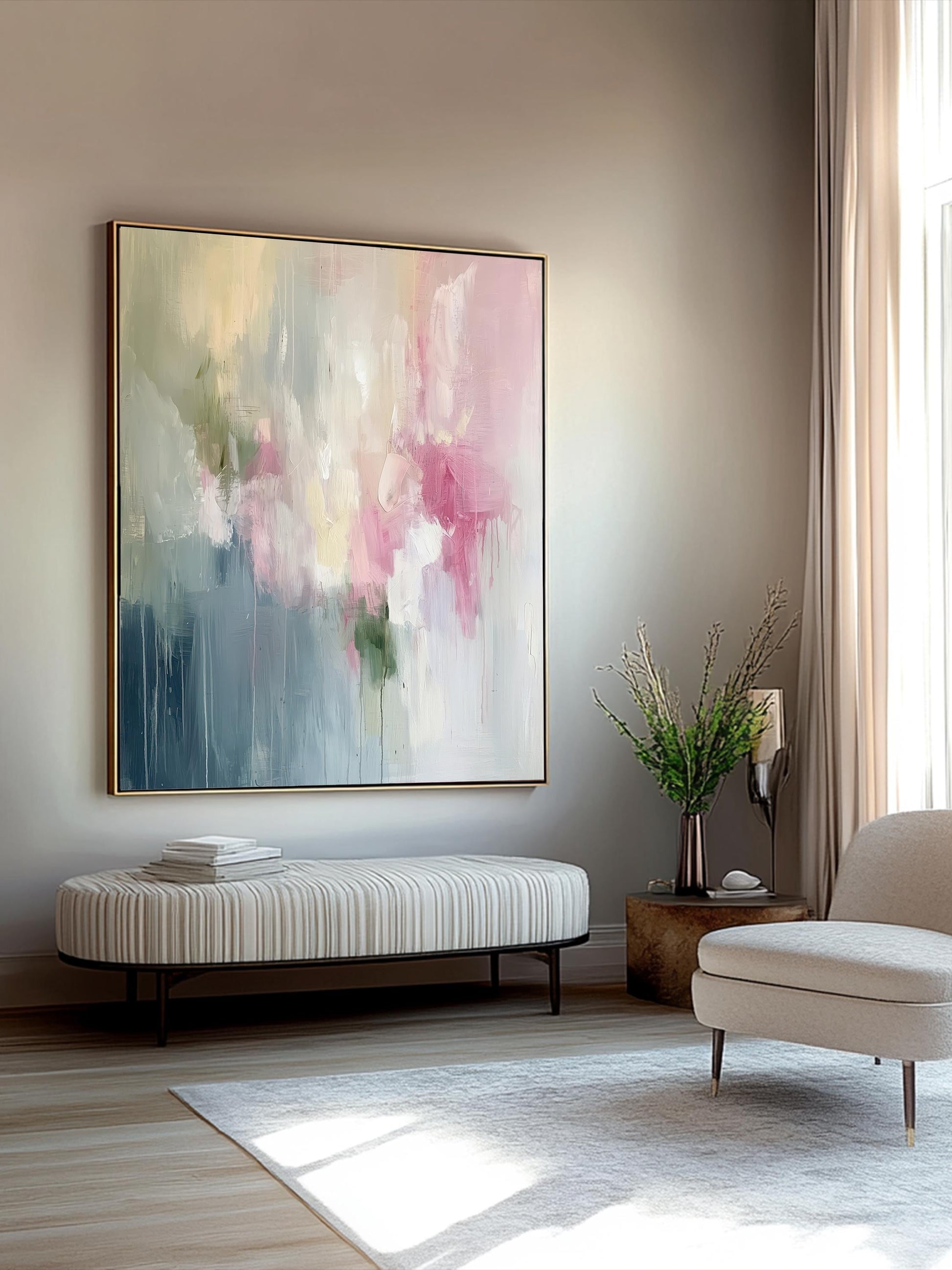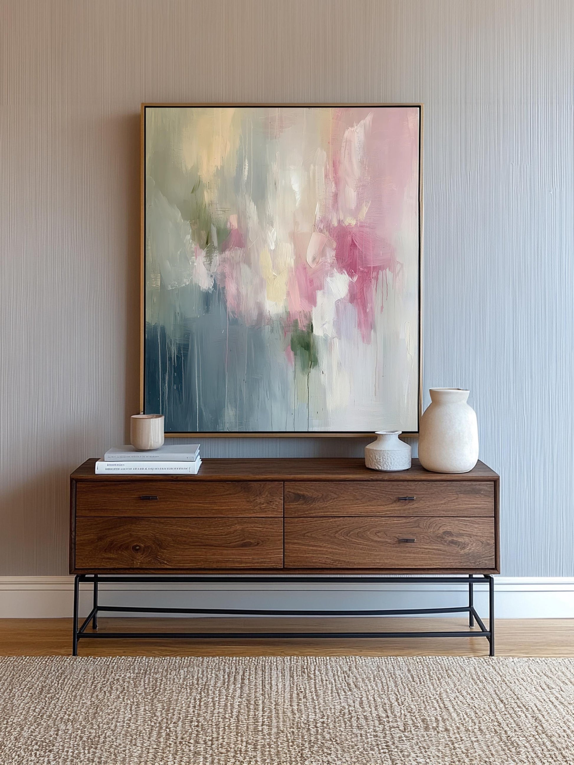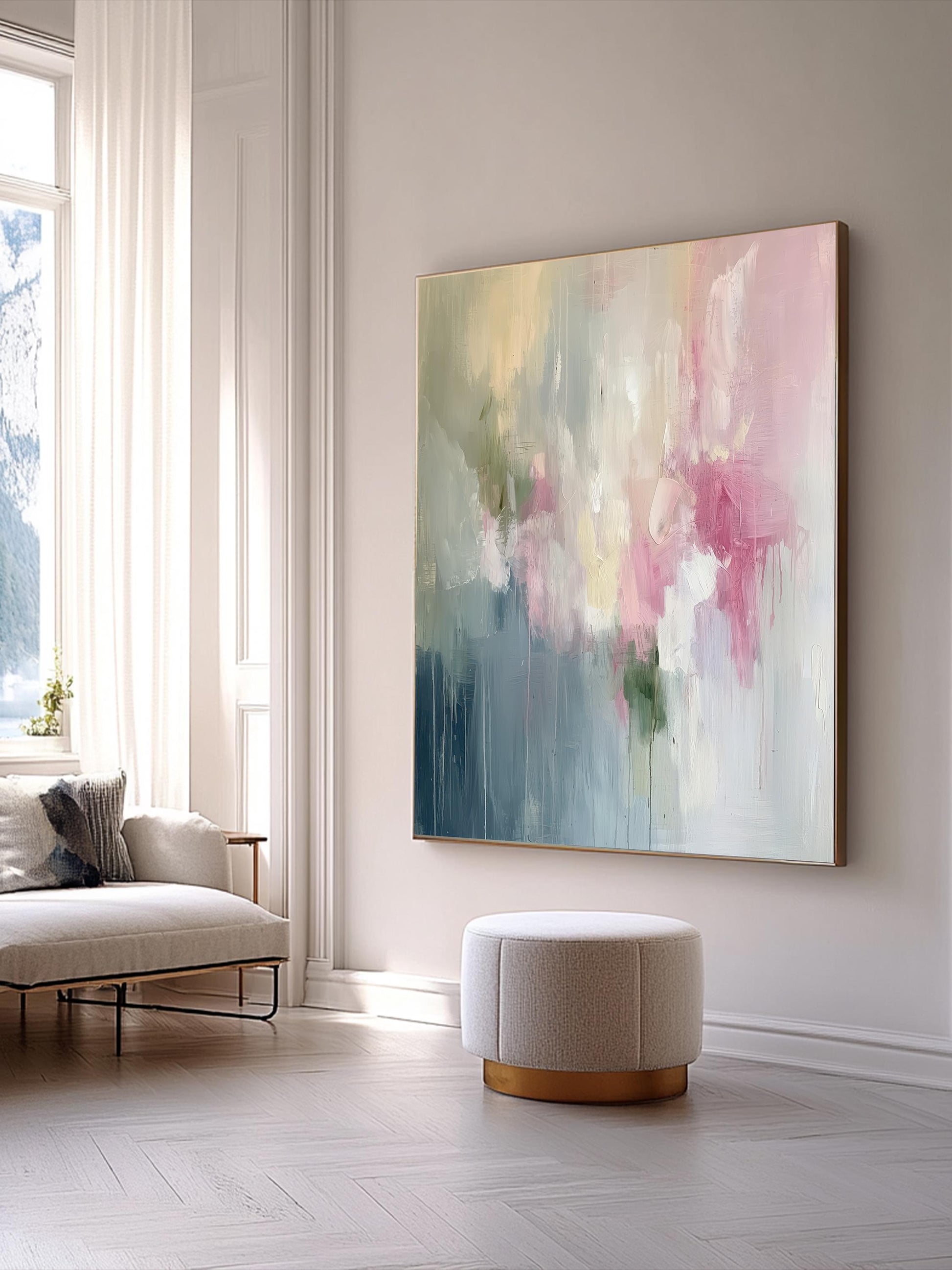 Pink Abstract Art Print on Canvas Wabi Sabi Wall Art Decor Blue Modern Canvas Print Wall Decor Abstract Art in Soft Tones Pastel Painting