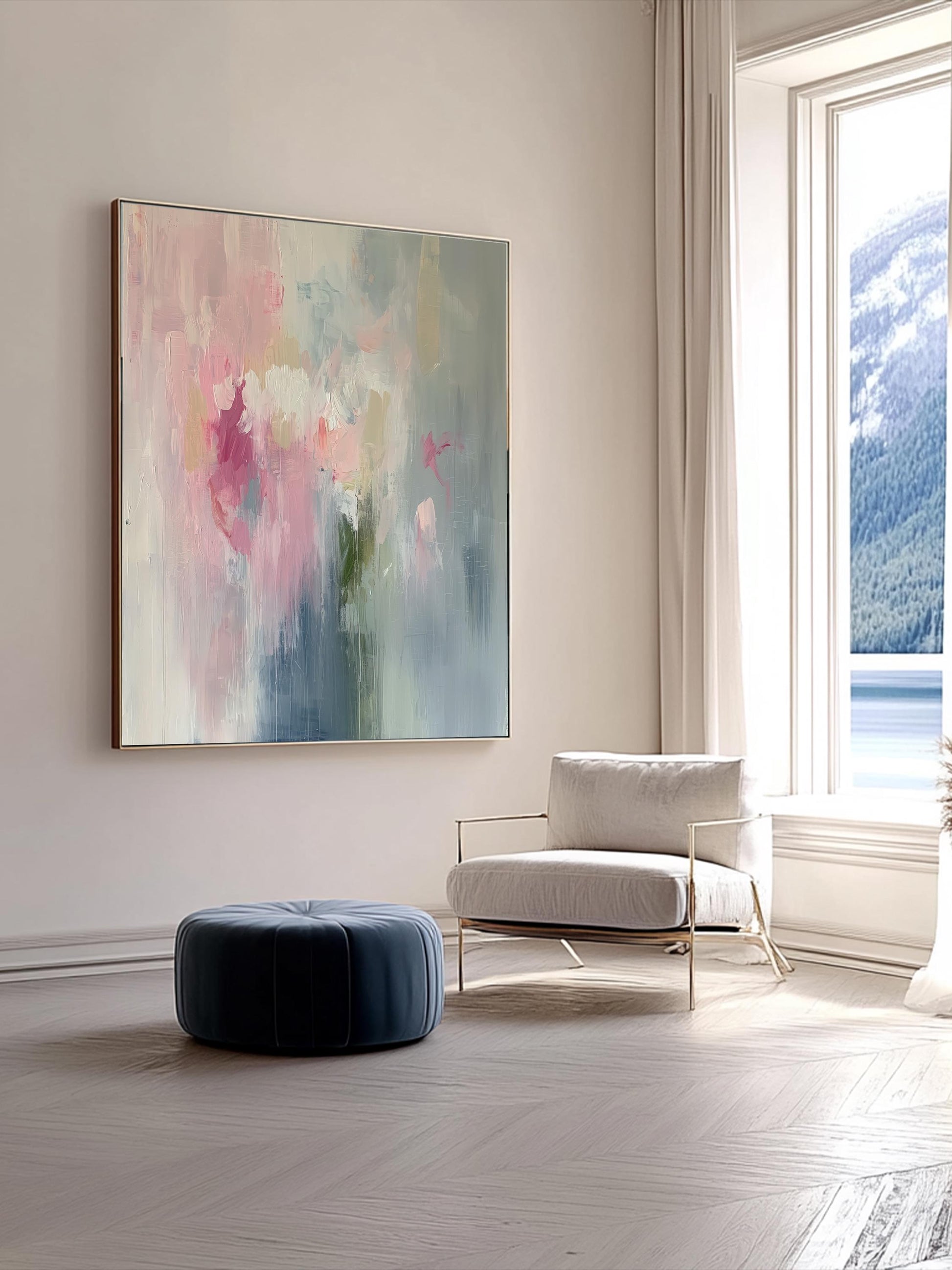 Soft Pastel Abstract Painting Pink & Blue Canvas Art Print, Modern Wall Decor, Large Elegant Minimalist Home Accent Wabi Sabi Wall Art Decor